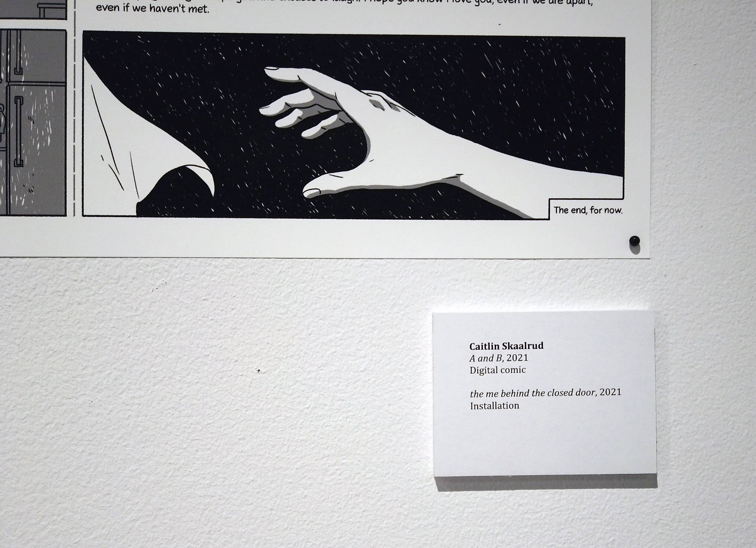 ‘the me behind the closed door’ is a mixed-media installation featuring paper sculptures, paintings, altered found objects, and a thesis in comics form exploring and developing the relationship with my deceased grandmother, beyond the barriers of time and space and the separation of death. The exhibit was completed for the 2021 MFA Thesis group show ‘hungry for after,’ hosted in the Katherine E. Nash Gallery at the Regis Center for Art, April 27th - May 14th.